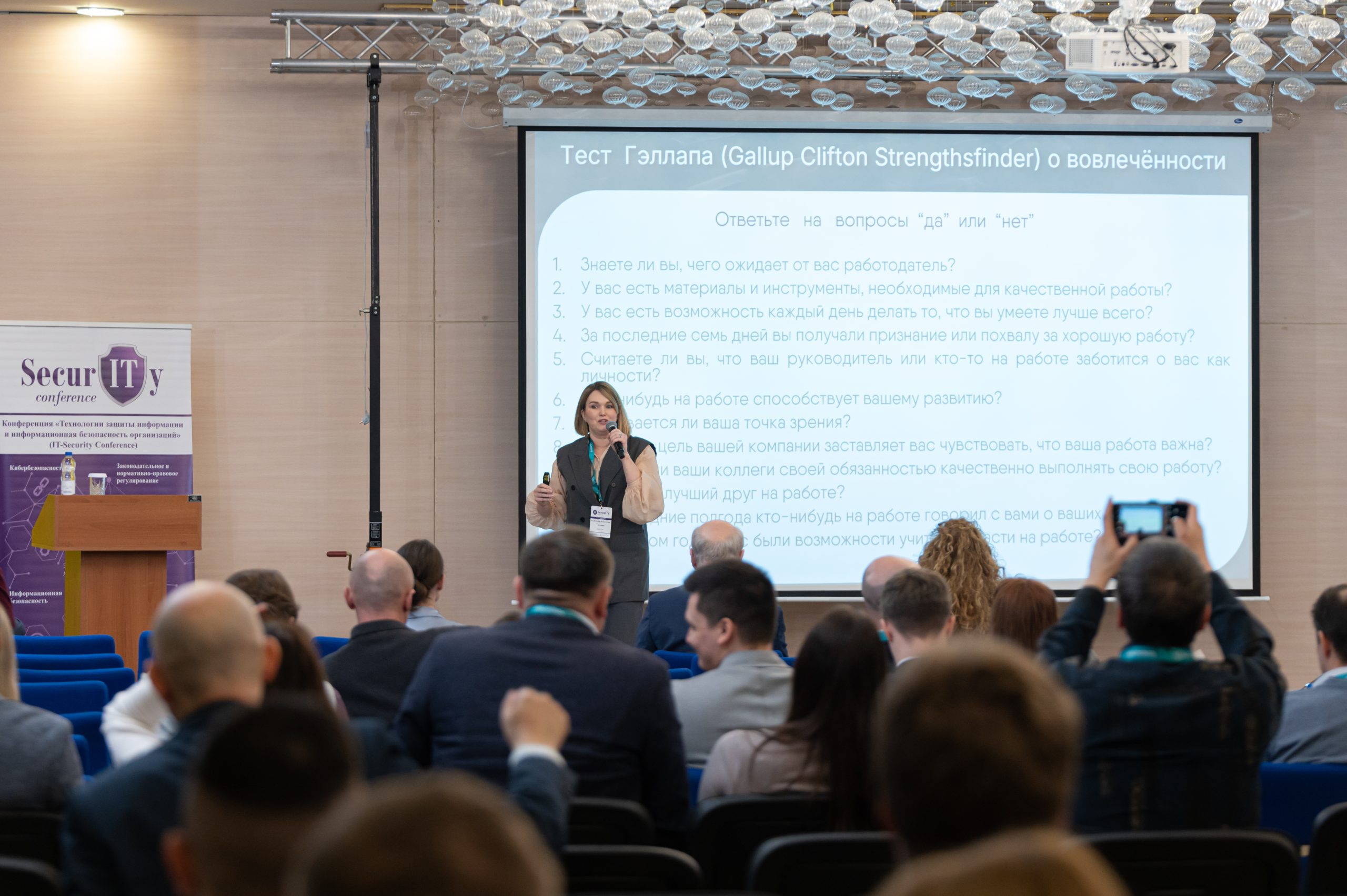 Выступление нашего бизнес-тренера Татьяны Елисеевой-Бузыкиной было на тему «Психологическая безопасность сотрудников подразделений информационной безопасности». Тема нашла большой отклик у участников конференции, вопросы задавали и на выступлении, и после него. На самом деле это базовая тема, которую нужно исследовать в каждой компании, которая задумывается о росте и развитии.